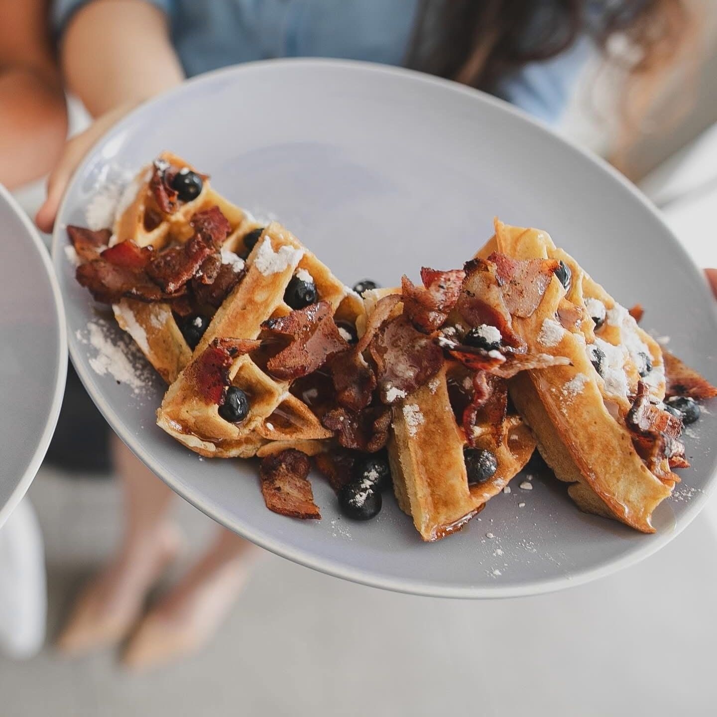 Tocino crujiente/maple/blueberries