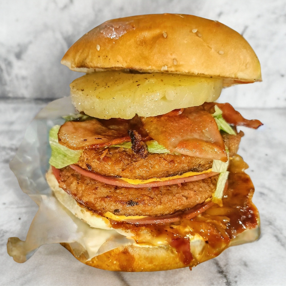 3 hamburguesas hawaianas orden de papas y Pepsi de 1.75