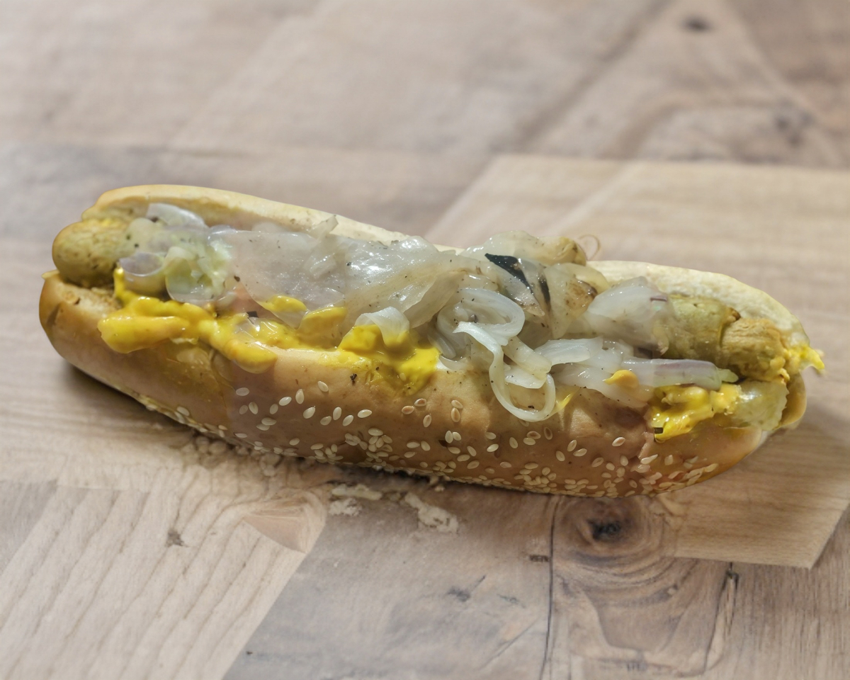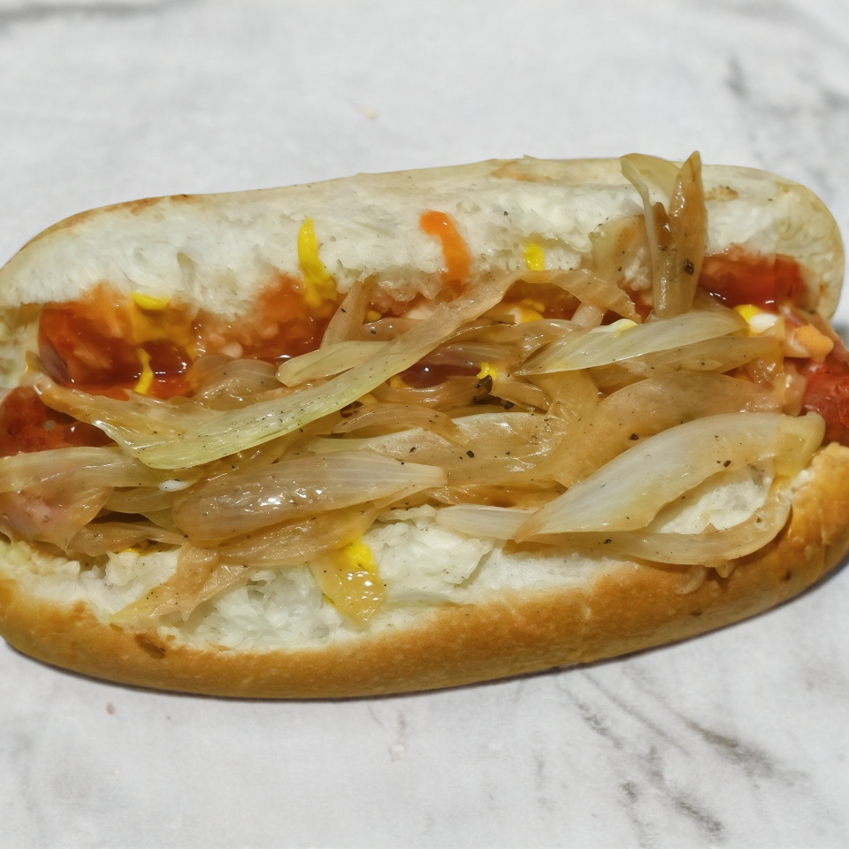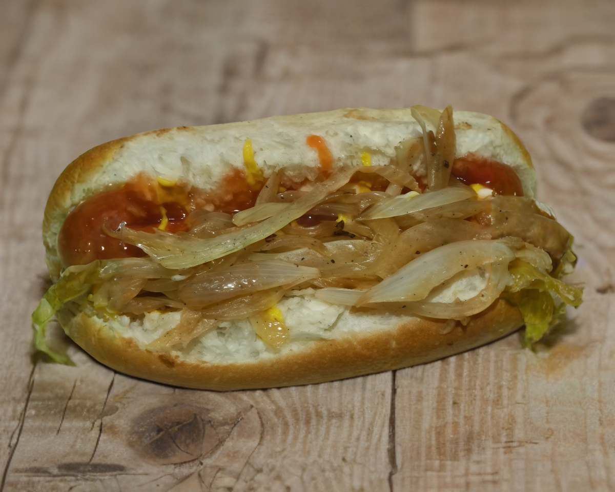 Salchicha de pavo cebolla aderezos jalapeños cebolla