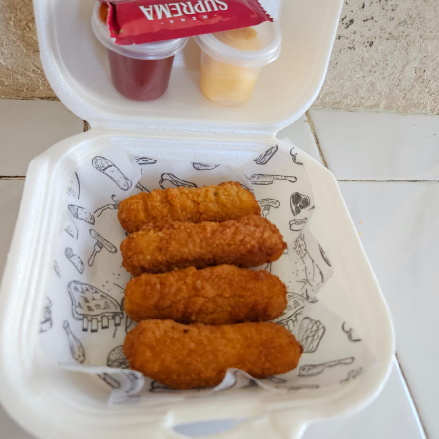 Ricos dedos de queso mozarella, empanizados y fritas , incluye aderezo ranch , catsup , salsa picante y queso cheddar .