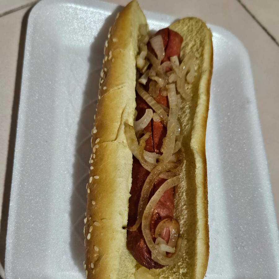Dogo sencillo jumbo , con salchicha de pavo ( 18 cm ) , pan de dogo con ajonjolí ( 19 cm ) aros de cebolla , incluye catsup , mostaza , jalapeño y mayonesa.