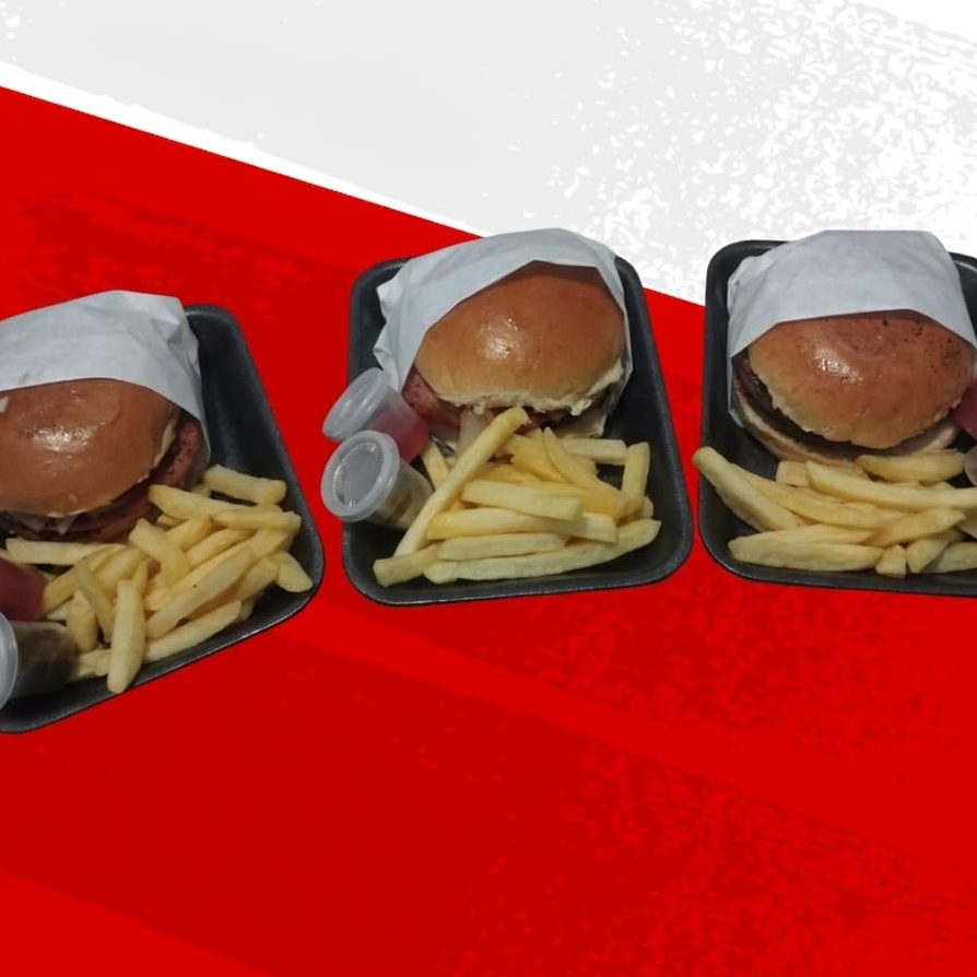 2 Hamburguesas res con chorizo 2 perritos 2 papas francesa