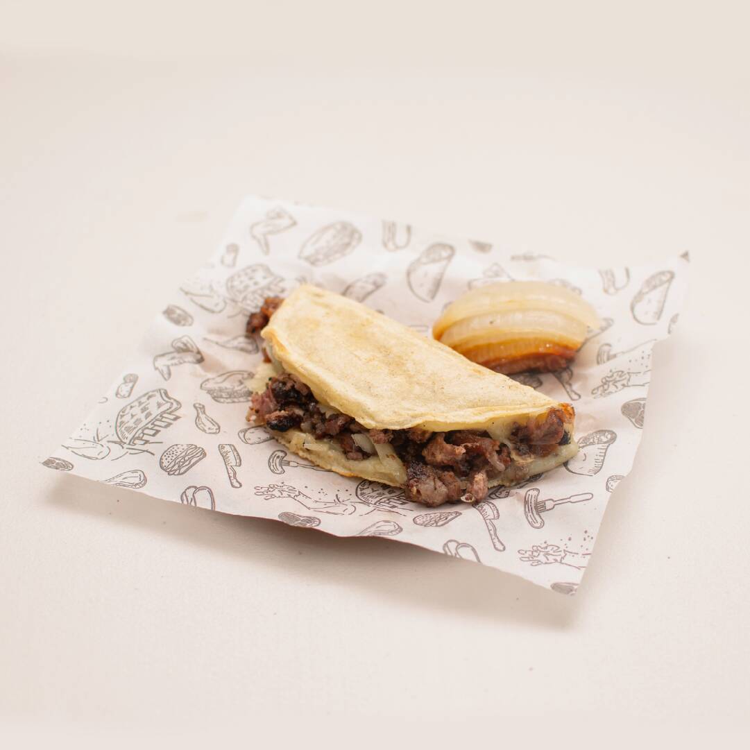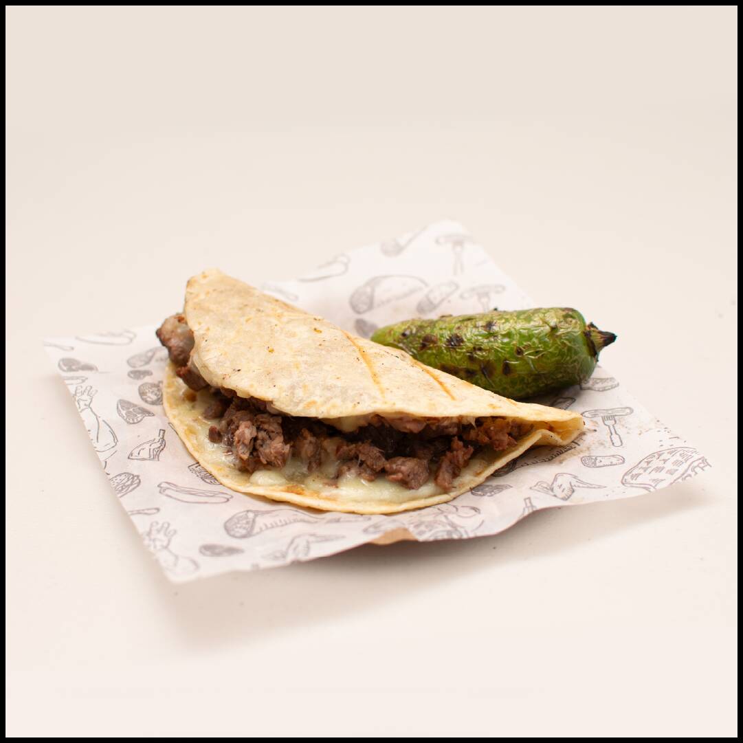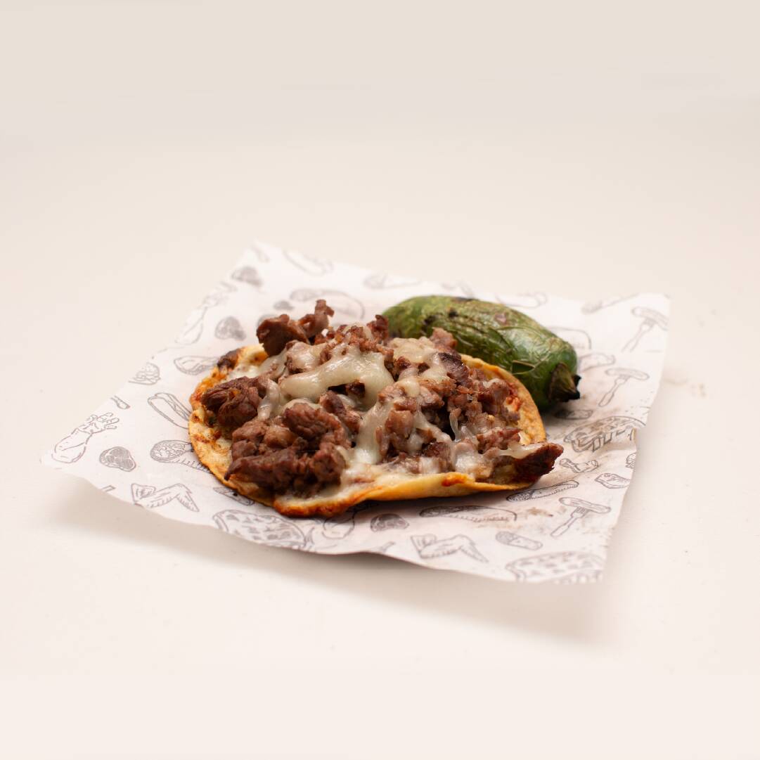 Tortilla de maíz hecha a mano con queso y top sirloin asado al carbón