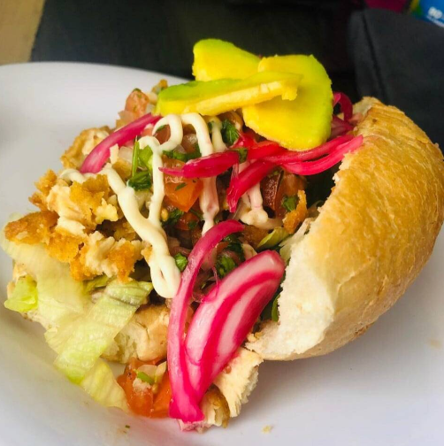 Tortillon, frijol, pollo a la plancha con trocitos de piña y tocino, queso y queso A, de papas, chipotle y cátsup. Incluyen papas Hawaiano y mexicana.