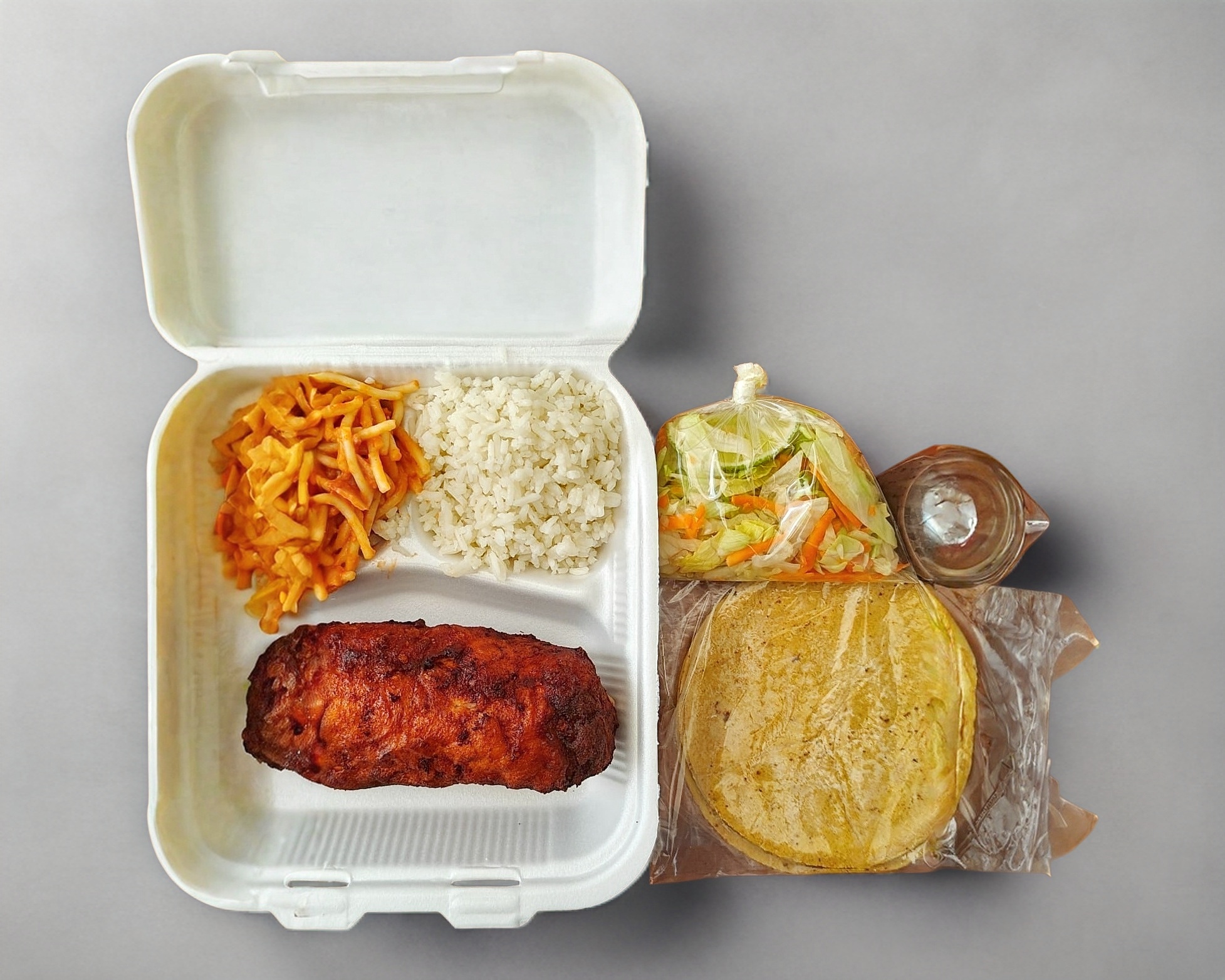 Pechuga aprox. 200 gr -Acompañada de espagueti, arroz, frijol, ensalada, tortilla y Aparte picante.(platillo personal)