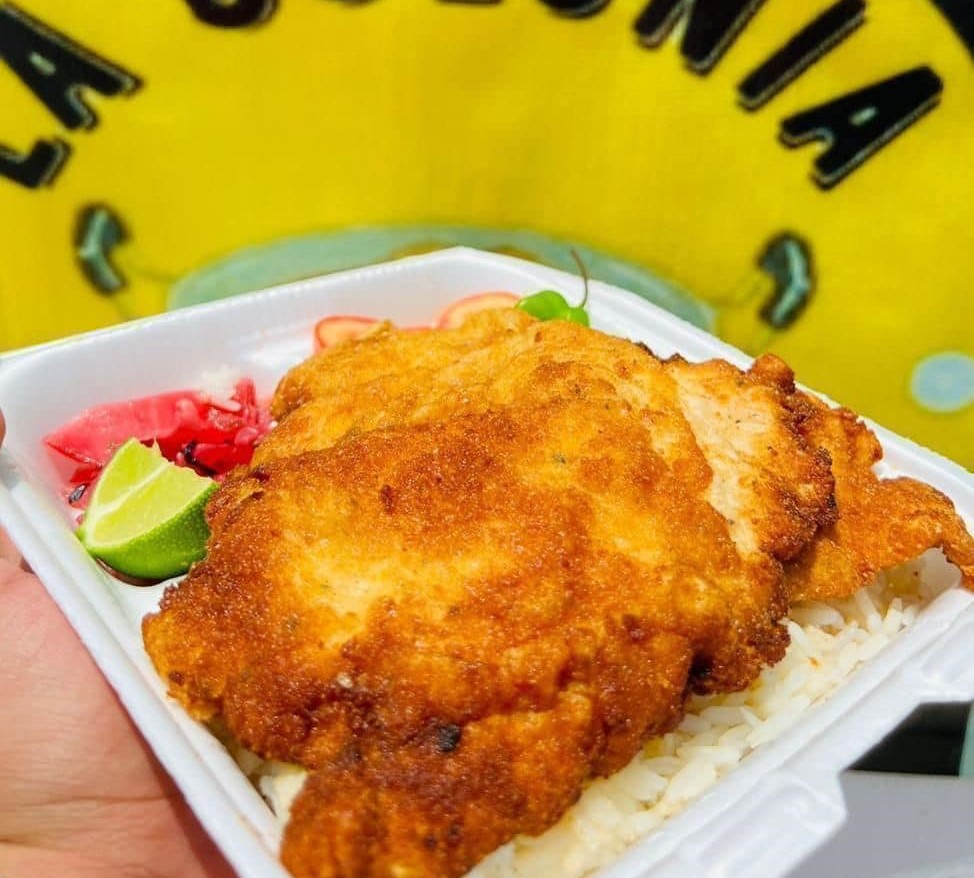 (Dos personas ) Pollo empanizado amarinada dos piezas : complemento a elegir, tomate lechuga, chile, limon, guiso y cebolla roja