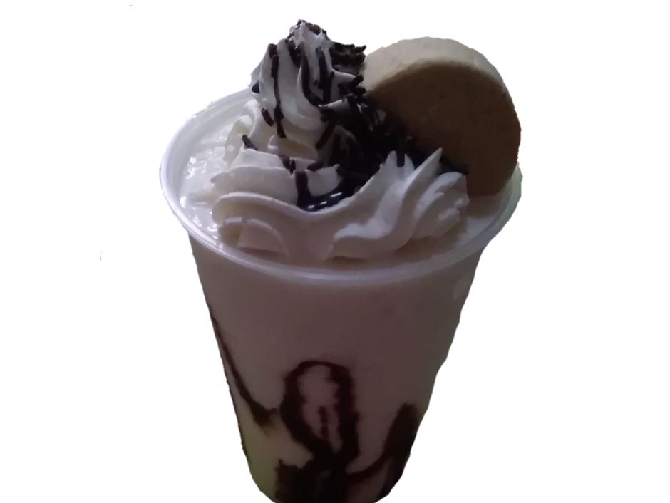 Bebida frappeada sabor bubulubu, hecha a base de leche y base de helado acompañado de crema batida y chispas de chocolate
