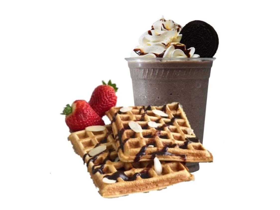 llevate una orden de wafle sencillo de 2 pz y un frappe sabor oreo de 16 onz