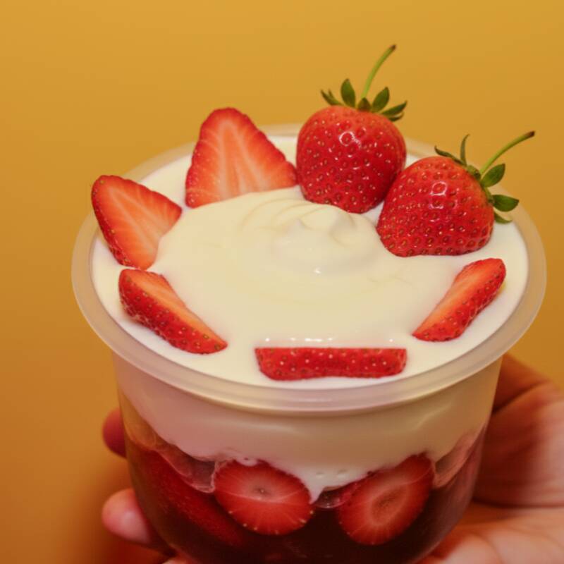 Fresas de m3dio litro con crema de la casa y fresa natural