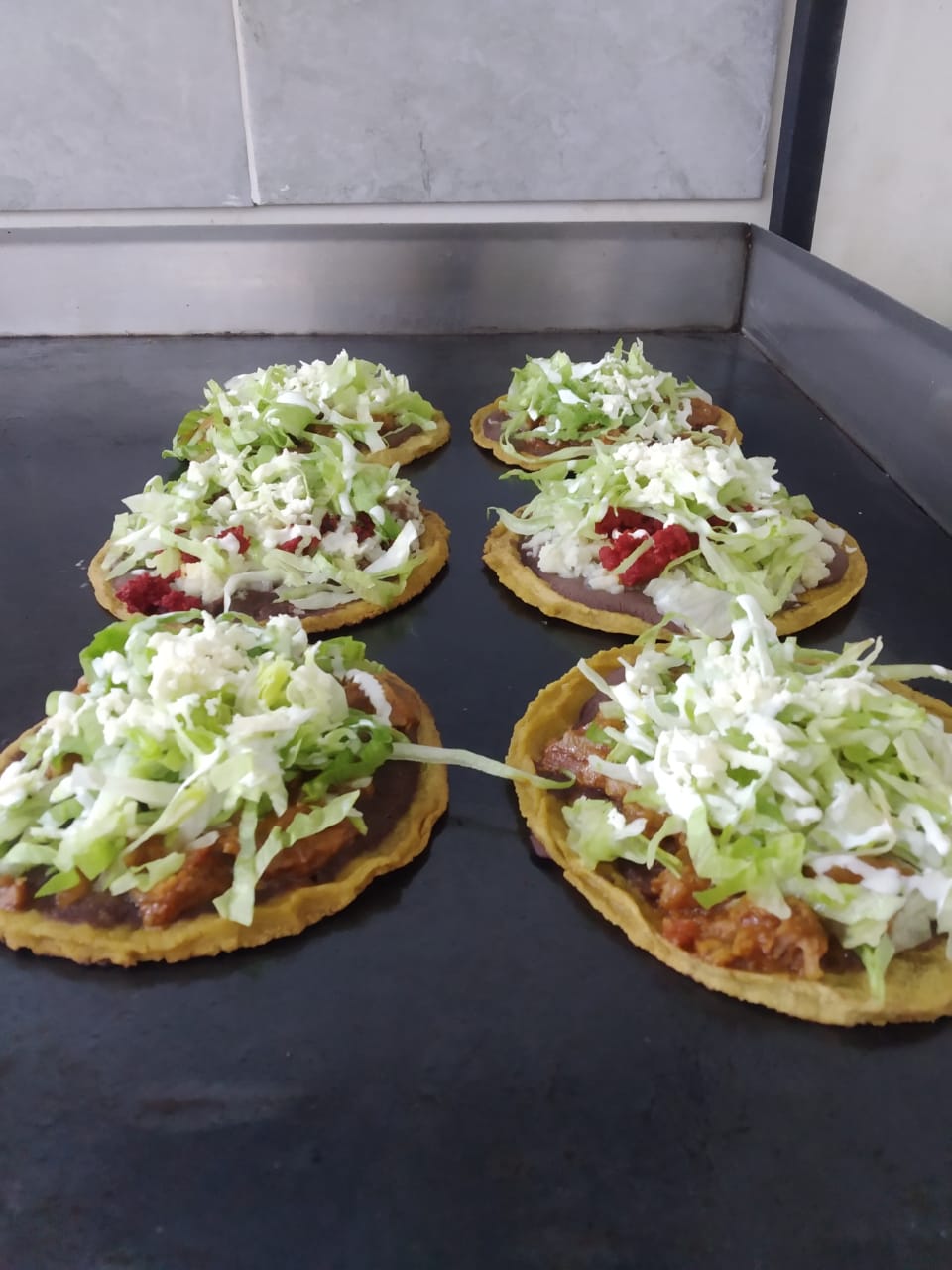 Tortilla al comal de 30cm con el ingrediente, acompañada de lechuga, crema y salsa por separado. No incluye queso.