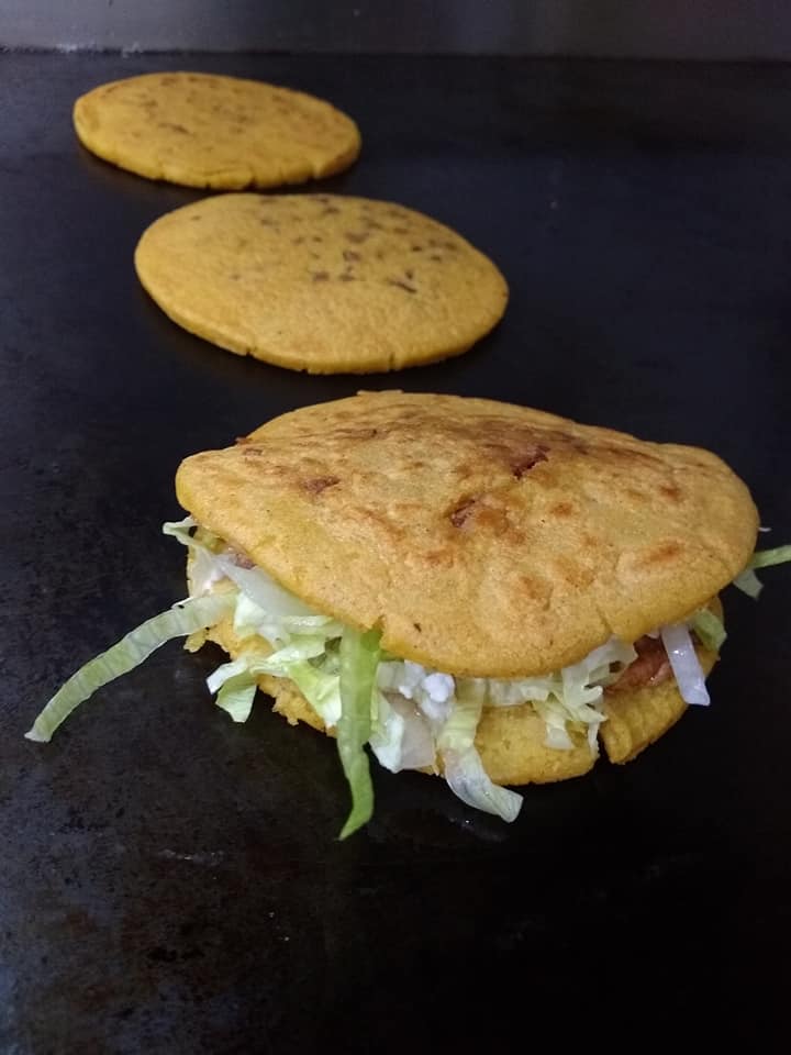Acompañada con frijol, lechuga, crema, queso panela y salsa.