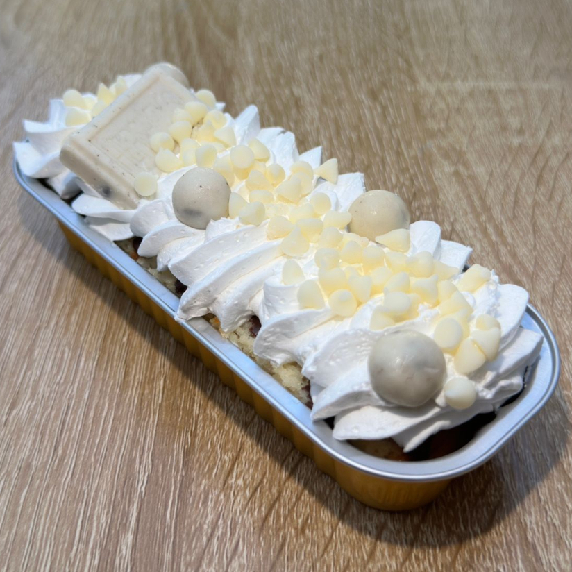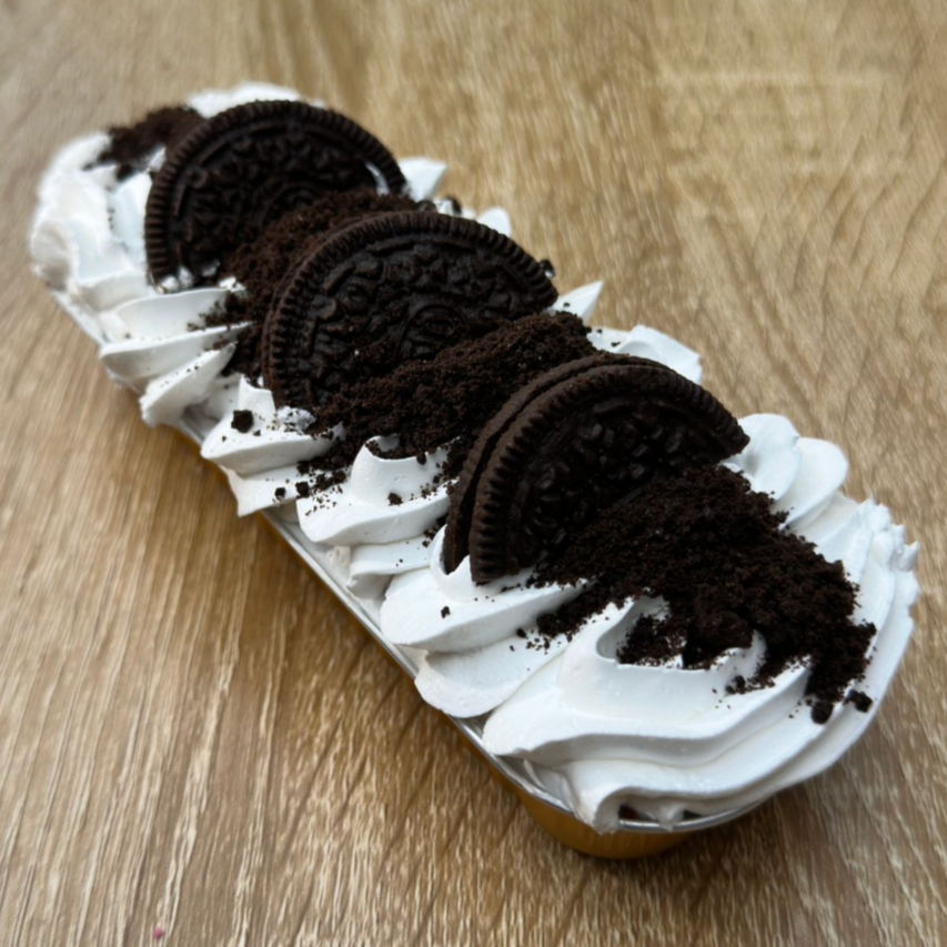 Pan de vainilla, tres leches, crocante de chocolate, crema batida y galleta Oreo.