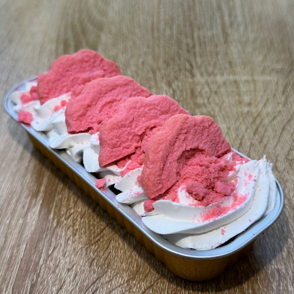 Pan de vainilla, bañado de tres leches con un toque de crocante de chocolate, crema batida de vainilla, Galletita Rosquitas triturada y enteras.