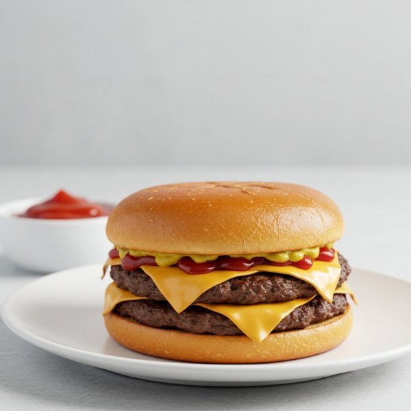 Dos carnes smashed y sazón de la casa, queso americano, ketchup, mostaza brown y mayonesa, sobre pan brioche tostado.