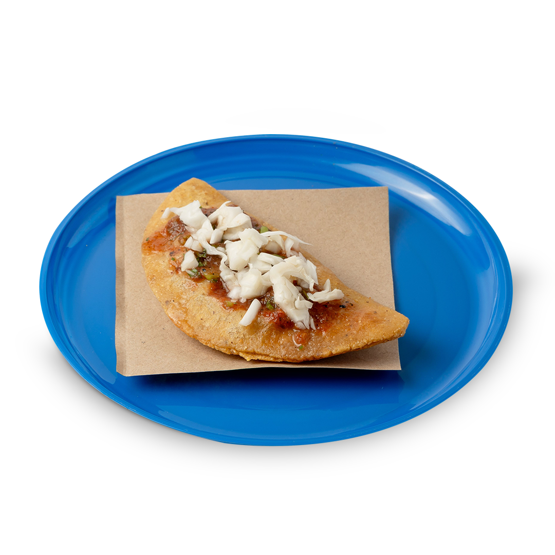 Antojito yucateco a base de masa de maíz relleno de frijol, dorado y servido sin guiso.
