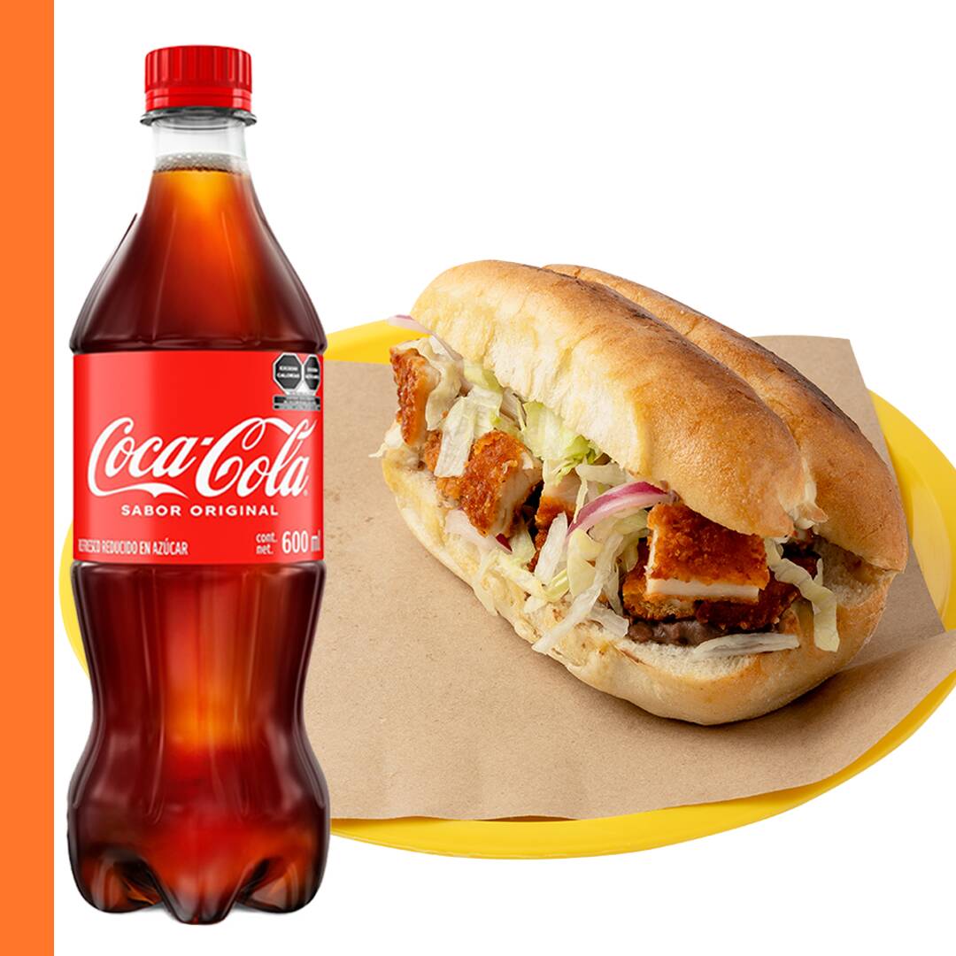 Torta de empanizado con Coca Cola a elegir entre regular o Zero.