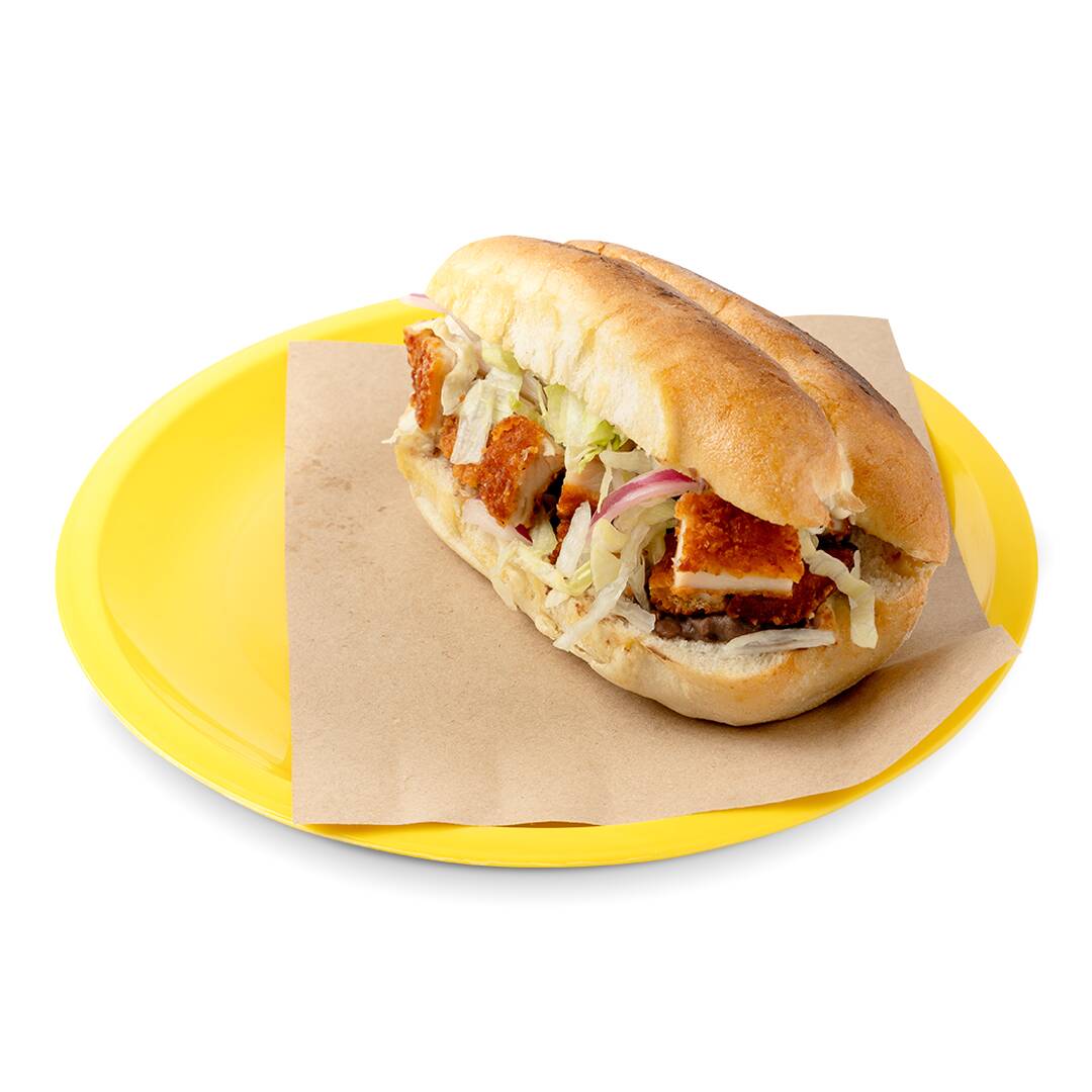 Pan suave relleno de cochinita pibil estilo yucateco, acompañado de cebolla morada encurtida.