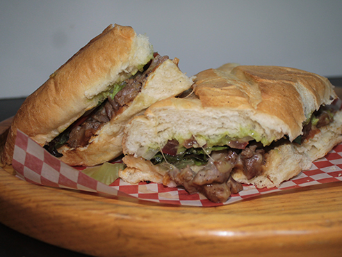 Deliciosa selección de carne de bistec gratinada con queso en 3/4 de baguette.