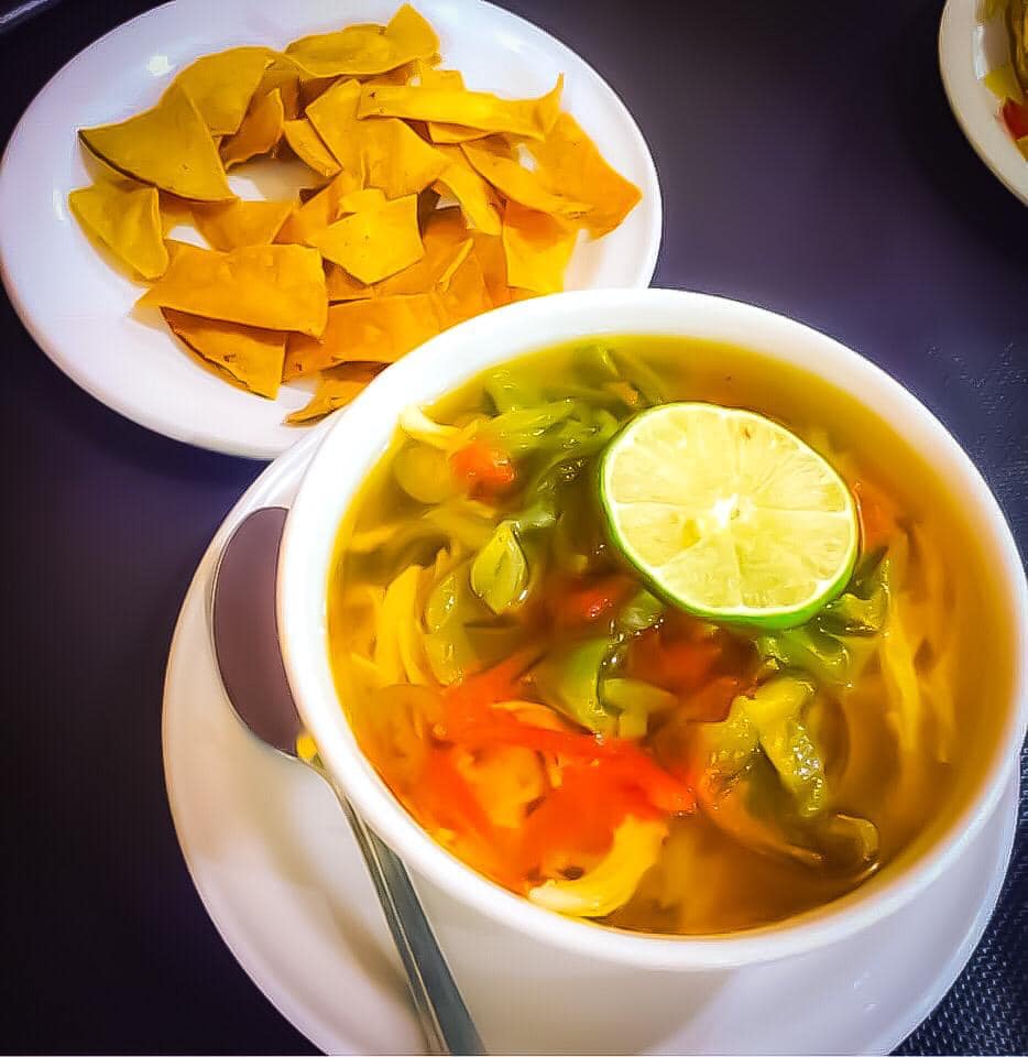 730 ml. Sopa con 250 gr. de pavo con totopos.