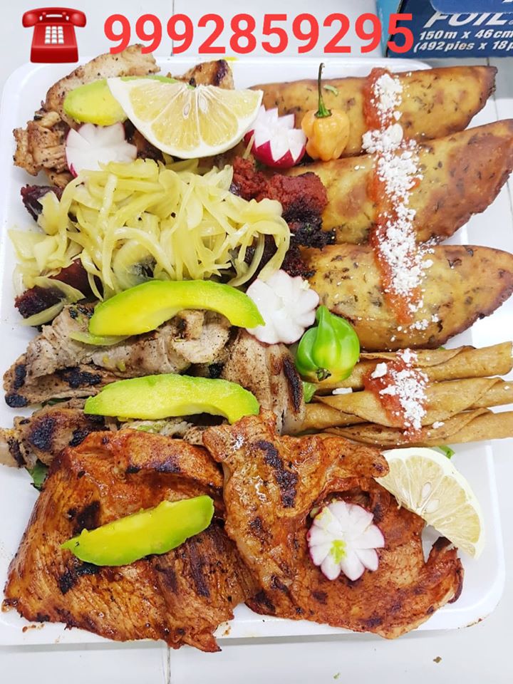 Patillo elaborado para 3-4 personas contiene poc-chuc,puerco a la yucateca,pechuga a la plancha,longaniza asada,3 codzitos,3 empanadas con queso de bola,1/2 kilo de tortillas,1/2 litro de frijol.