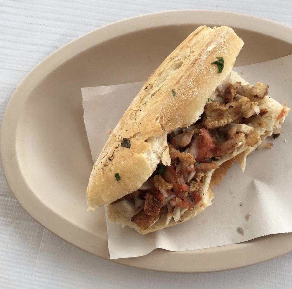 Pan de bolillo acompañado de .180 gramos de carne, con frijol, cebolla asada, tomate asado, pepino y guacamole