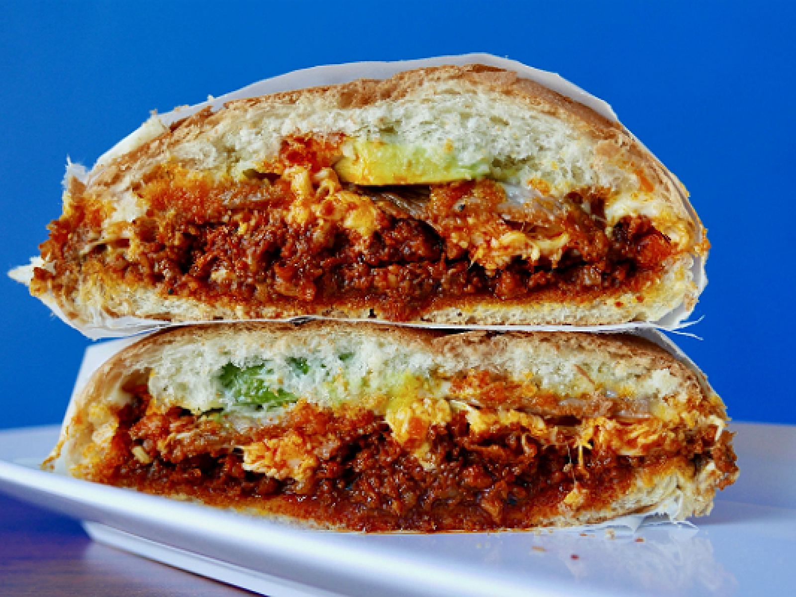 Pan de bolillo acompañado de 180 gramos de carne, con frijol, pico de gallo, pepino y guacamole