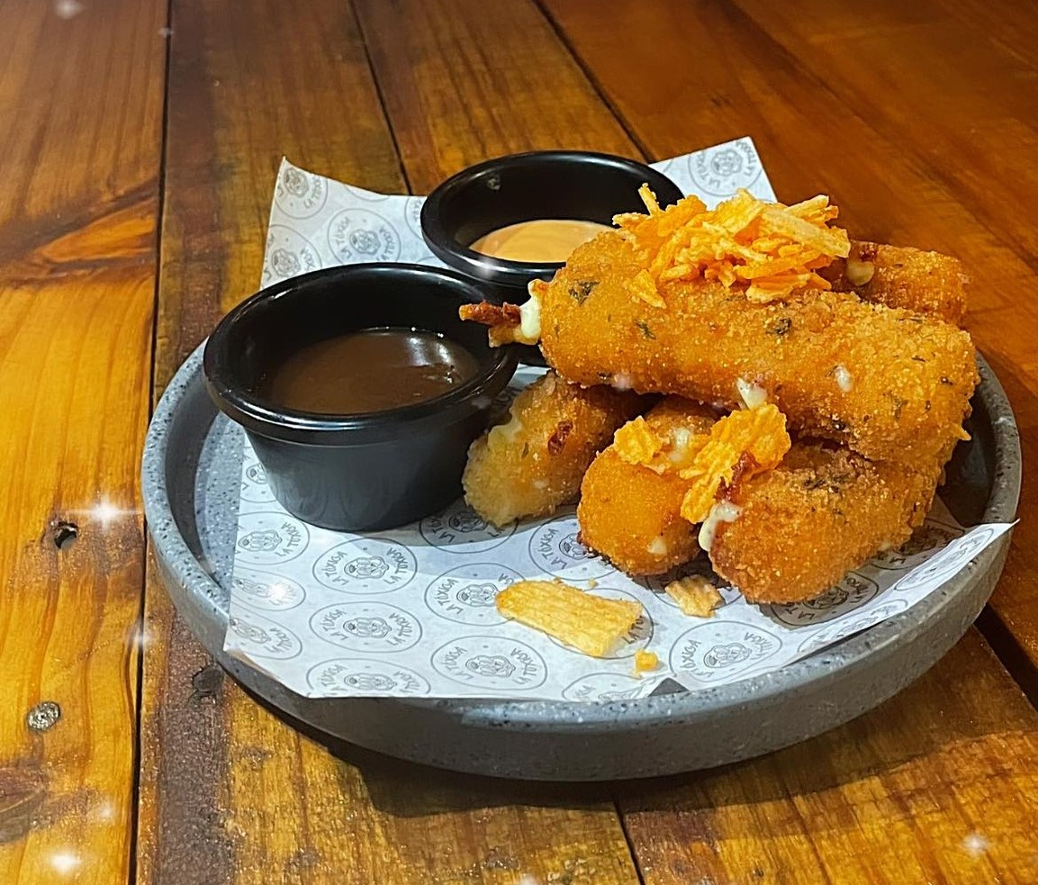 5 Piezas de queso chihuahua empanizados con panko, salsa BBQ y aderezo de la casa.