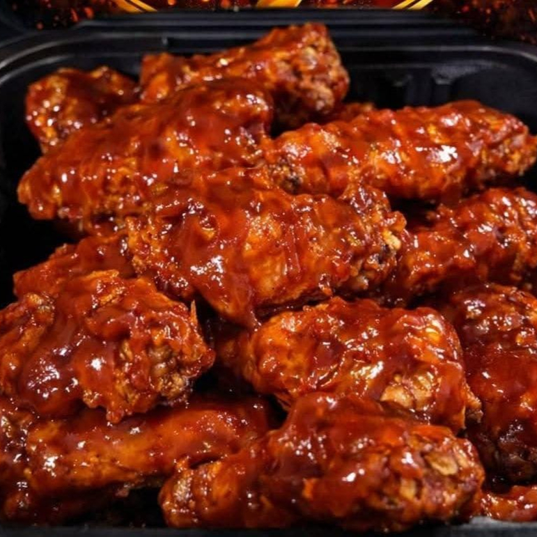 Orden de 30 pzas De deliciosas alitas, elige la salsa de tu preferencia, incluye aderezo crema de ajo, acompañadas de frescos bastones de zanahoria y pepino.