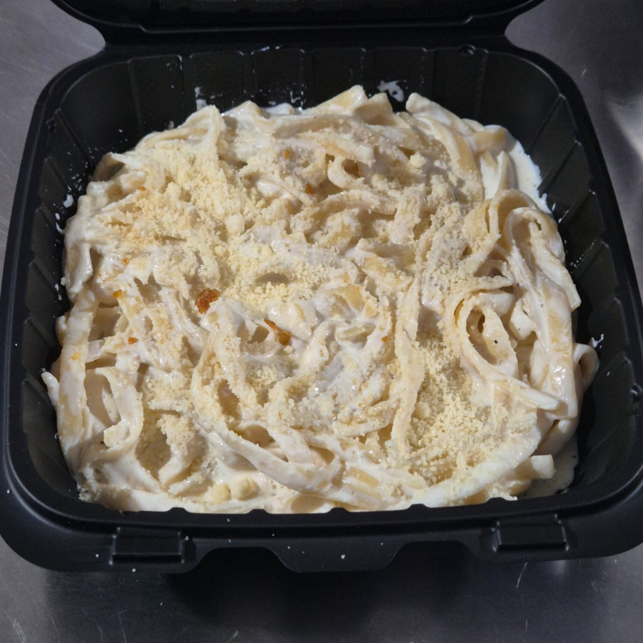 Deliciosa pasta con la tradicional salsa Alfredo.