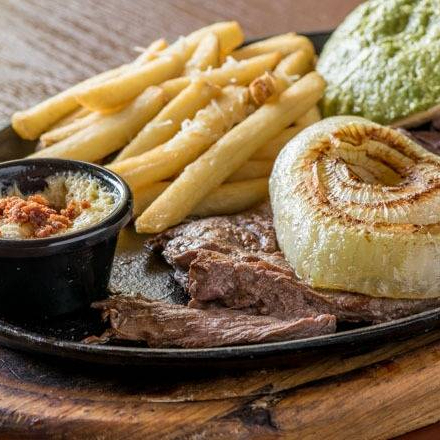 Deliciosa porción de 250 gr de arrachera asada a la parrilla. Acompañado de guacamole, papas de gajo y vegetales salteados.