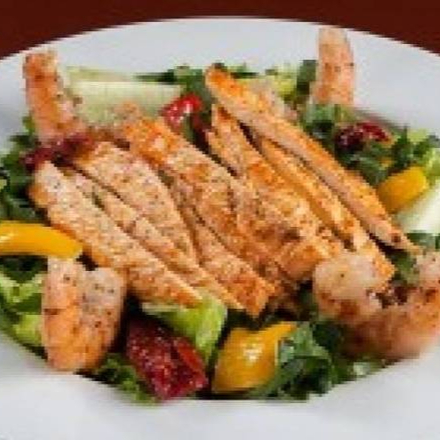 Deliciosa pasta en crema al pesto de albahaca con queso parmesano, tomate fresco y champiñones salteados, acompañada de tiras de pollo a la plancha. Servido con pan dorado al ajo y especias.