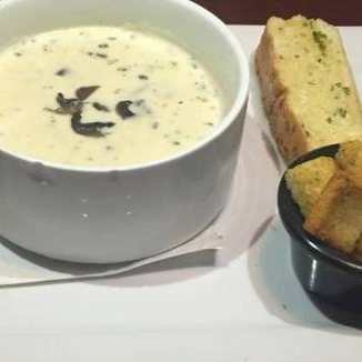 Nuestra nueva crema, hecha a base de frescos champiñones con crotones y pan de ajo.