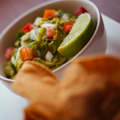 Aguacates frescos machacados al momento, mezclados con jitomate, cebolla, cilantro, y un toque de limón. Servido con totopos crujientes de maíz.
