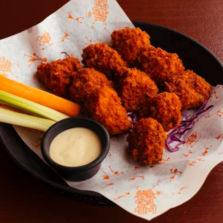 Crujientes, dorados y ligeros, con una capa de panko, una cebolla suave y jugosa por dentro. Acompañados de aderezo Búffalo Cheese. 8 piezas.