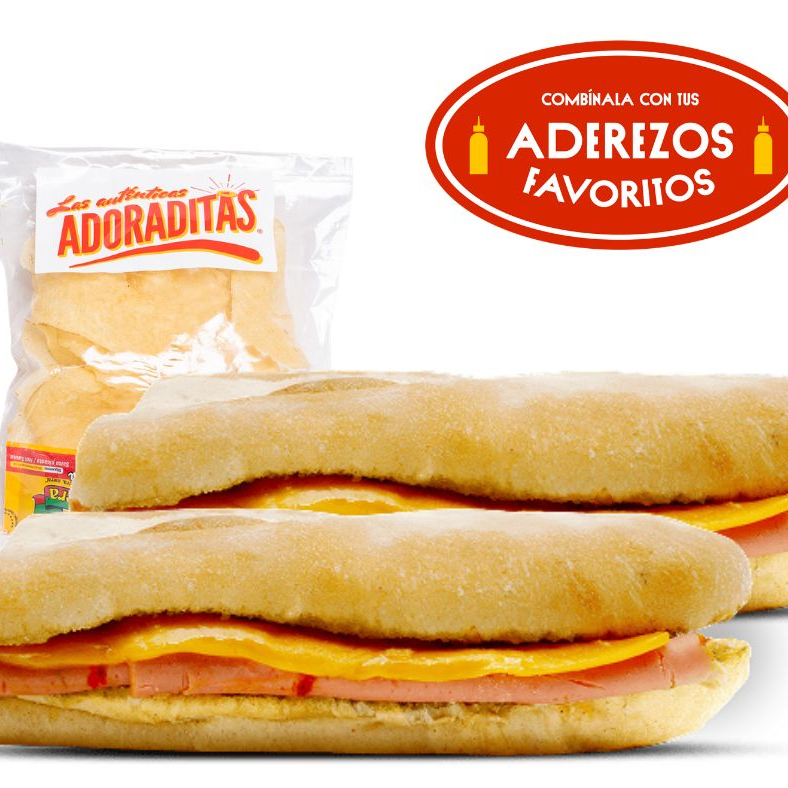 ¡Una super experiencia de sabor! nuestra deliciosa adoradita super especial con pechuga empanizada, jamón pechuga de pavo, pastel pimiento, salami, queso manchego, pico de gallo, aderezo de la casa y frijol.
