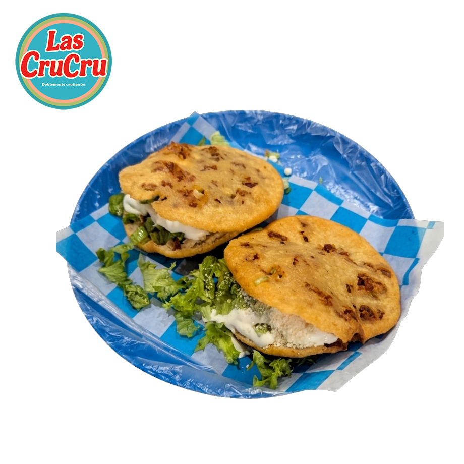 Deliciosa y crujiente gordita de chicharrón hecha a mano