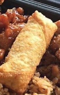 2 rollos primavera rellenos de verdura (repollo, zanahoria, apio y cebolla) y pollo picado (50 a 60 g) incluye salsas (porción personal).