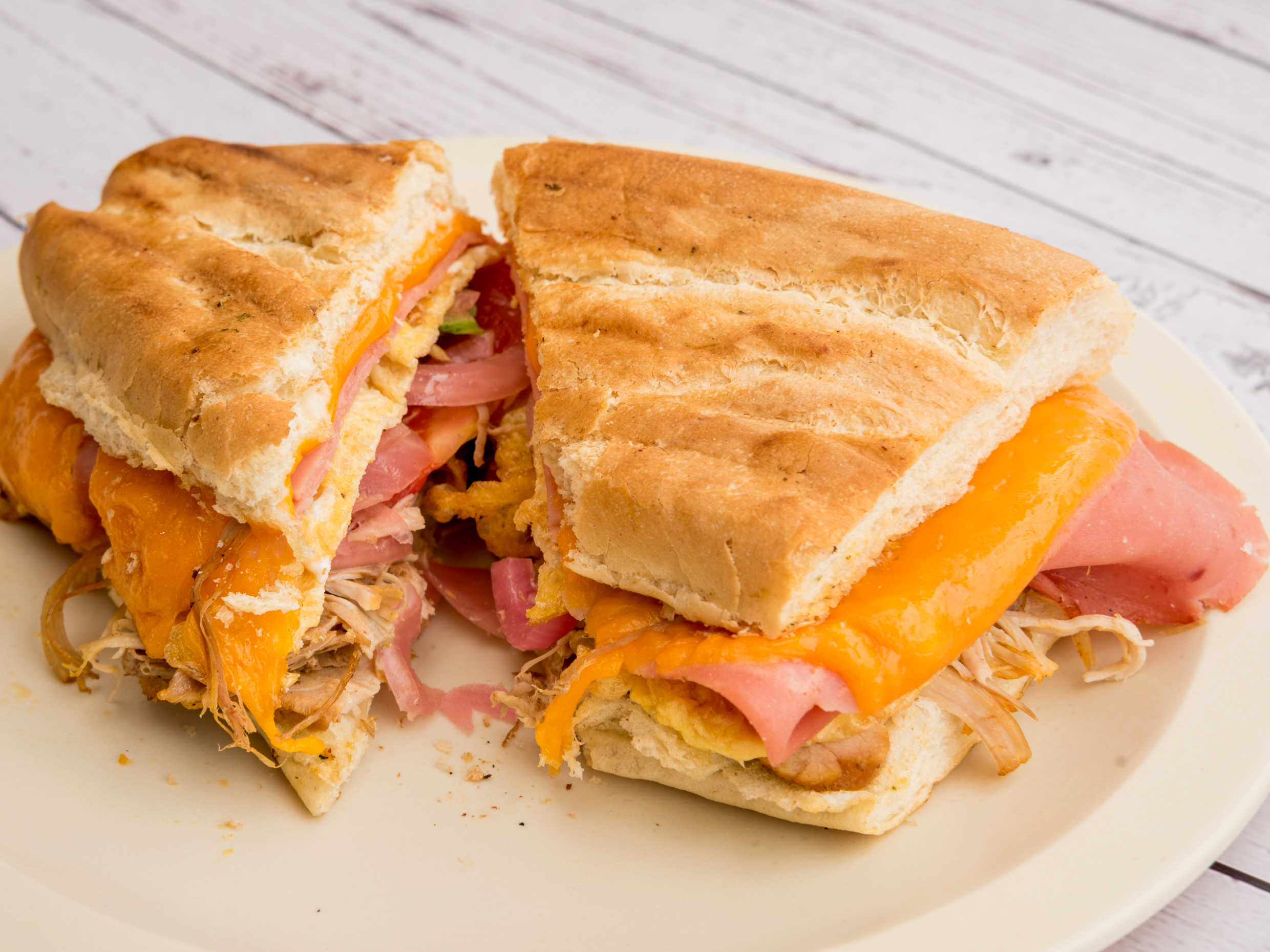 Pavo, pierna, jamon, queso, huevo.