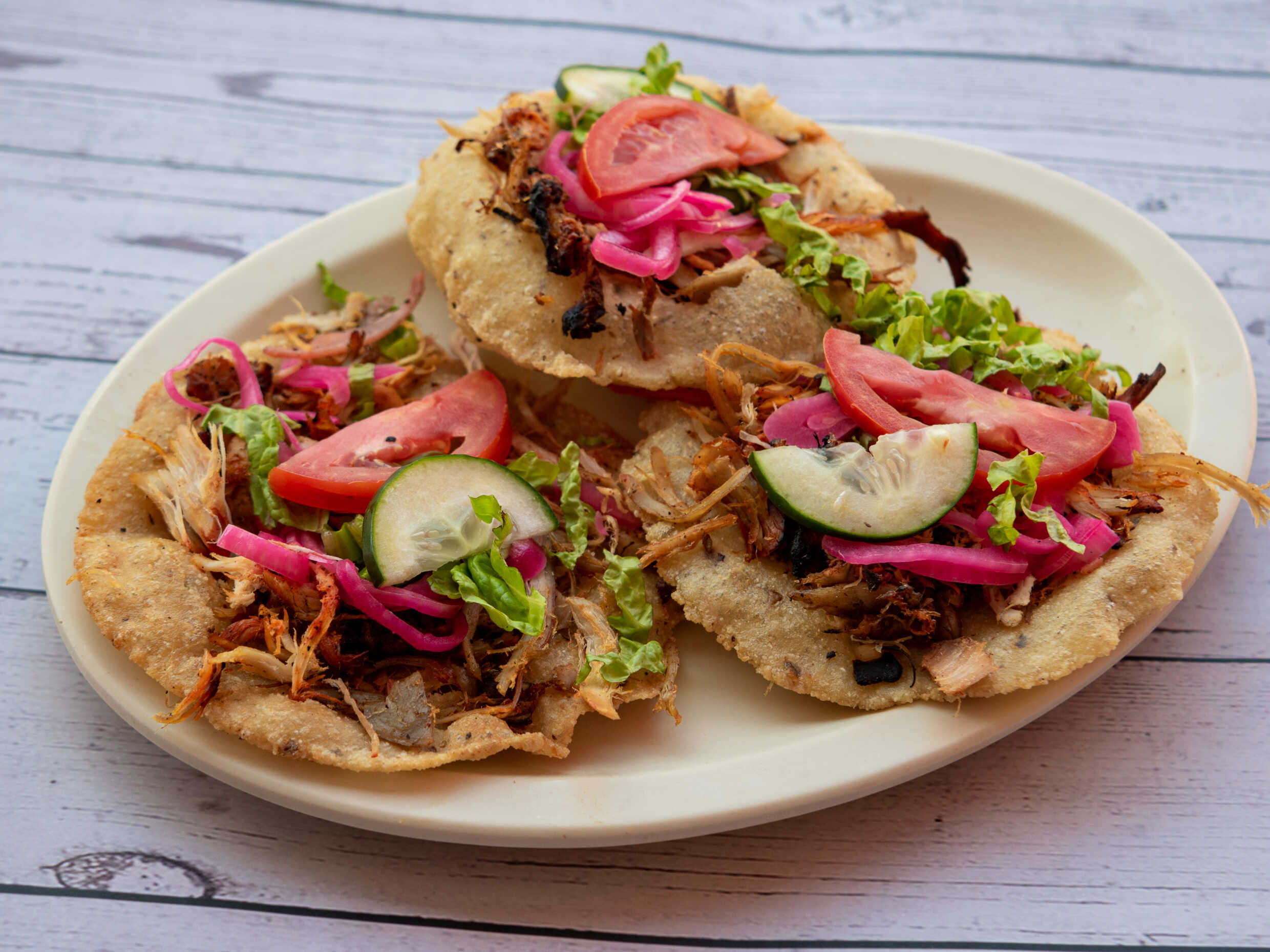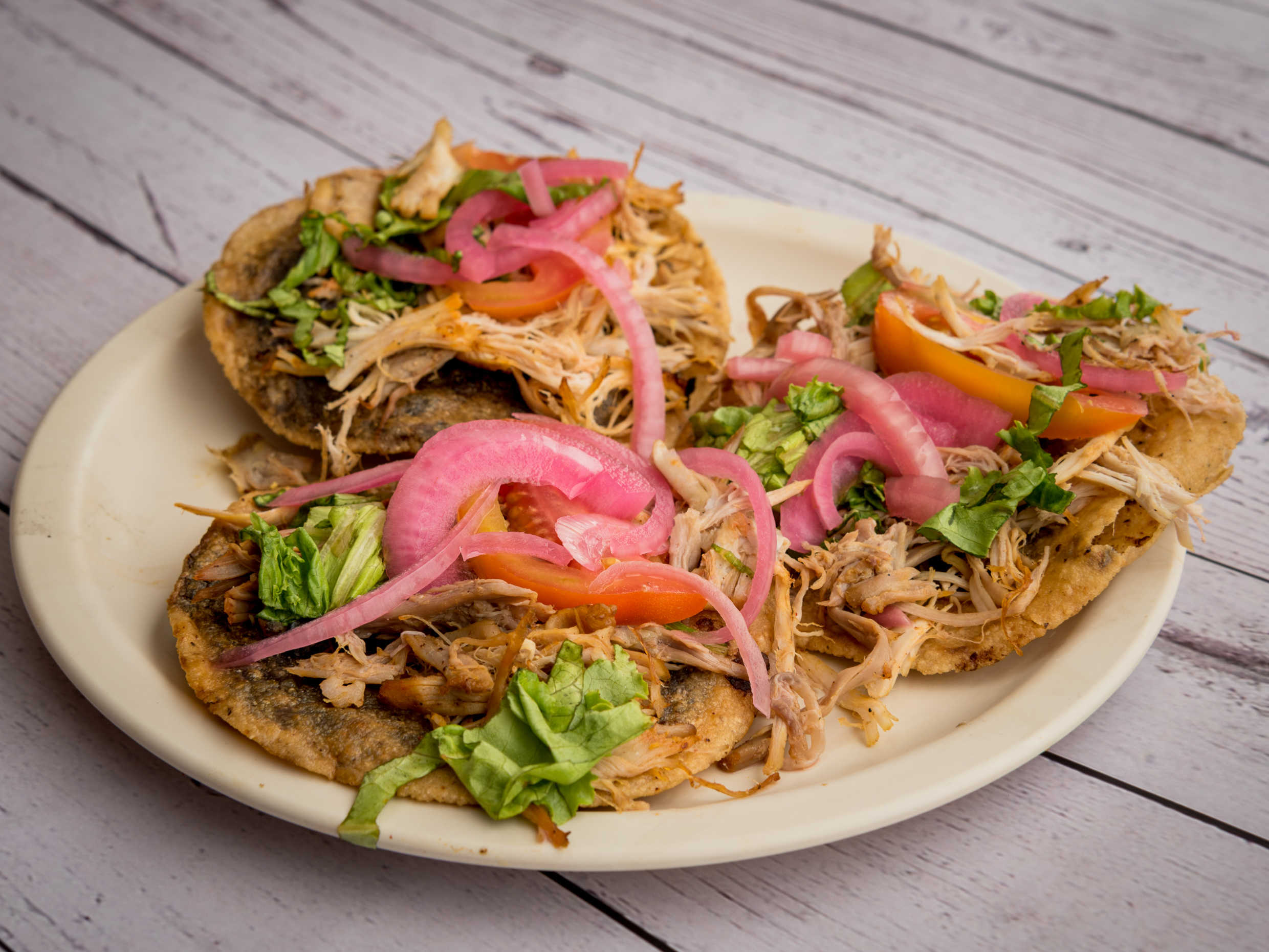 Platillo tipico yucateco a base de masa suave frita servido con tu guiso favorito.