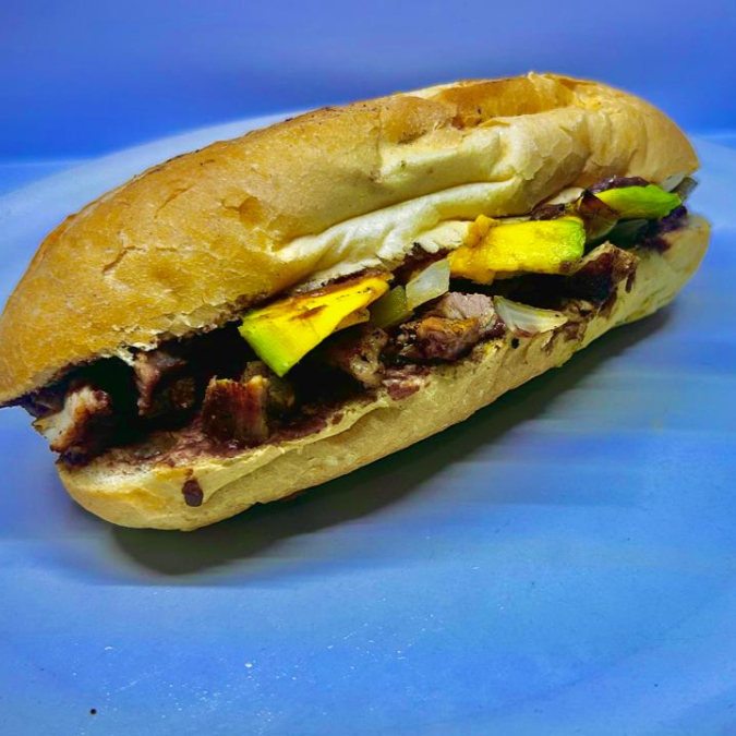 Bolillo ligeramente crujiente relleno de frijoles refritos y jugosa carne asada al punto perfecto. Se realza con cebolla asada de sabor ahumado, coronada con salsa verde y salsa roja que aportan frescura y picor, además del toque cremoso del aguacate. Una combinación abundante y vibrante que refleja lo mejor de la cocina mexicana.