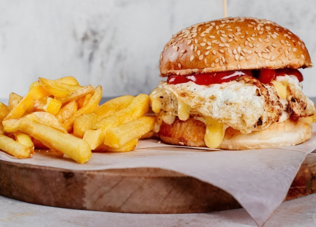DELICIOSOS BIMBOLLOS PARRILLEROS, CARNE DE PUERCO ADICIONADA CON ESPECIAS TRADICIONALES, JAMÓN VIRGINIA DE PAVO, QUESO AMERICANO, TOCINO AHUMADO, UN HUEVO ESTRELLADO, ROMANITA, JITOMATE EN RODAJA, CEBOLLA AL GUSTO, APARTE : SOBRE DE CATSUP, SOBRE DE MAYONESA, PAPAS A LA FRANCESA CHICAS Y REFRESCO DE 355 ML O DE 600 ML. CON PEQUEÑO COSTO EXTRA