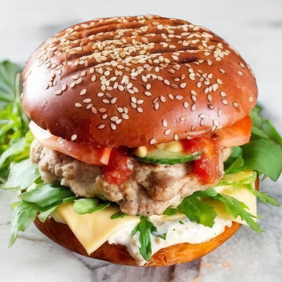 CHICKEN BURGER CON CHAMPIÑONES 🐔🐔🐔 ( POLLO )