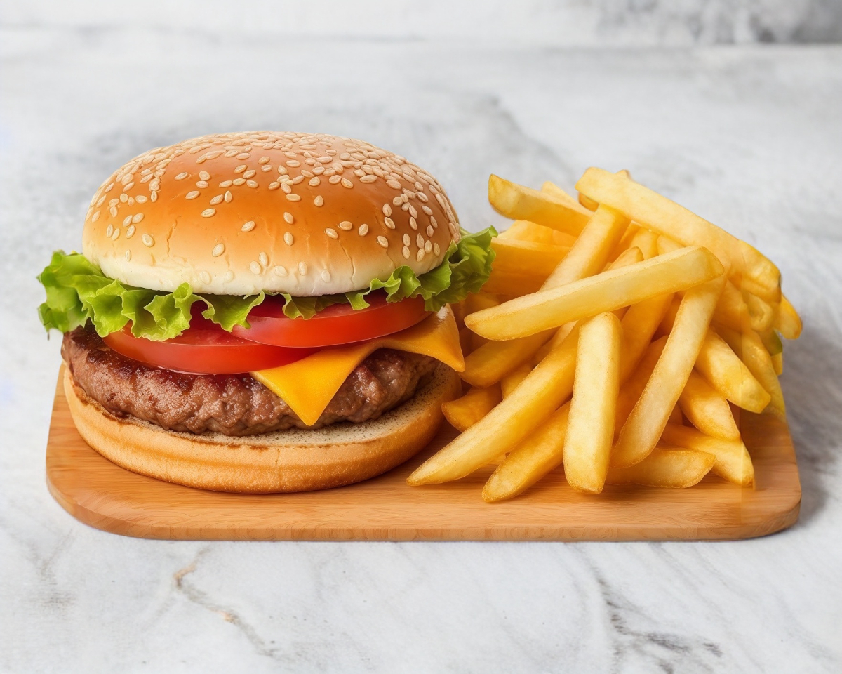 HAMBURGUESA CLASICA DE PUERCO CON PAPAS CHICAS 🐷
