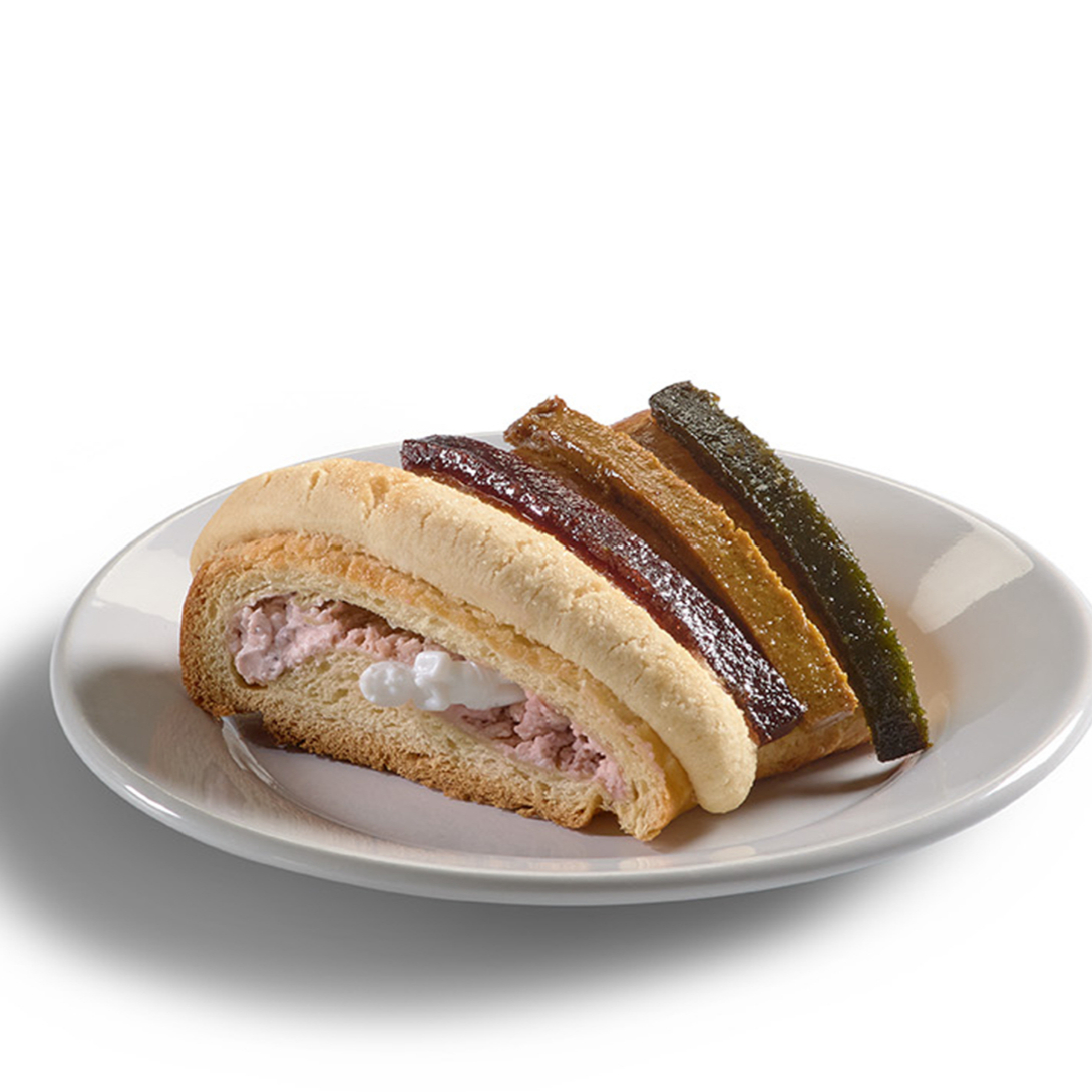 Rebanada de rosca de reyes rellena de queso crema y mermelada de zarzamora (140g)