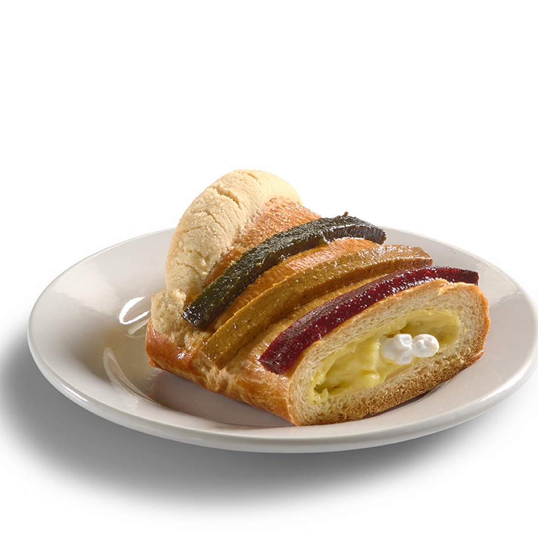Rebanada de rosca de reyes rellena de crema pastelera (140g)