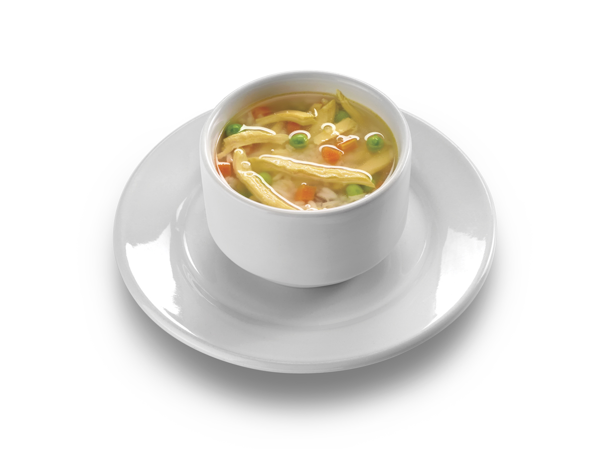 Delicioso consomé con pollo deshebrado, arroz blanco, zanahoria y chícharo. Incluye 1 bolillo por platillo