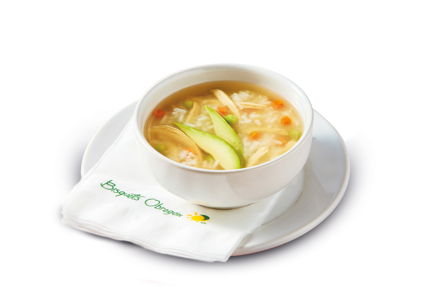 Delicioso consomé con pollo deshebrado, arroz blanco, zanahoria y chícharo. Incluye 1 bolillo por platillo