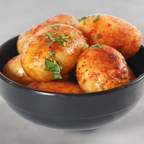 Pequeñas papas cambray salteadas con mantequilla, ajo y hierbas frescas.