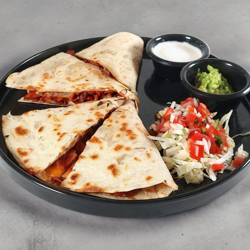 Tortilla de harina con manchego con relleno de proteina a elegir