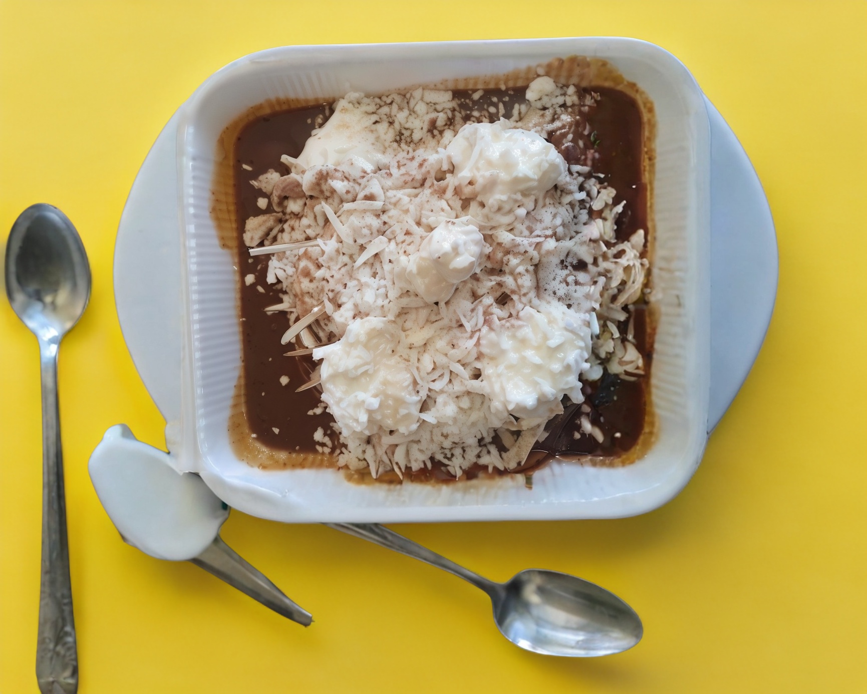 tortillas mole dulce pollo crema queso fresco y cebolla